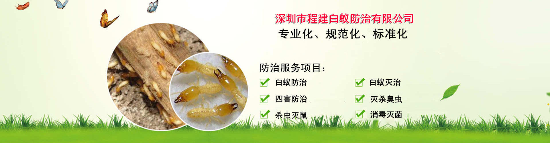 深圳市程建白蟻防治中心有限公司:致力于白蟻防治工程、深圳市白蟻防治公司、預(yù)防白蟻工程、建筑工程白蟻預(yù)防、白蟻滅治、殺白蟻、滅白蟻、治白蟻、除白蟻、防白蟻,白蟻消殺、預(yù)防白蟻、深圳市殺白蟻公司、有害生物防制:深圳市殺蟲公司、深圳消殺公司、深圳市消殺中心、除四害、白蟻如何根治、深圳市消毒公司、家里發(fā)現(xiàn)白蟻怎么辦、滅蟑螂、 工廠殺蟲、物業(yè)殺蟲、辦公室消殺、工業(yè)園殺蟲等、專注于為客戶民提供專業(yè)解決蟲害方案,通過(guò)技術(shù)團(tuán)隊(duì)創(chuàng)新研發(fā)新技術(shù)和學(xué)習(xí)傳統(tǒng)技術(shù)相結(jié)合,針對(duì)客戶需求,為客戶量身打造更加全面的白蟻防治、白蟻滅治、深圳市殺蟲、深圳消殺、深圳市殺白蟻等有害生物防制施工措施。